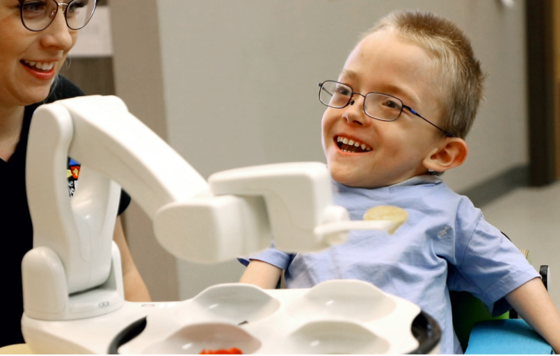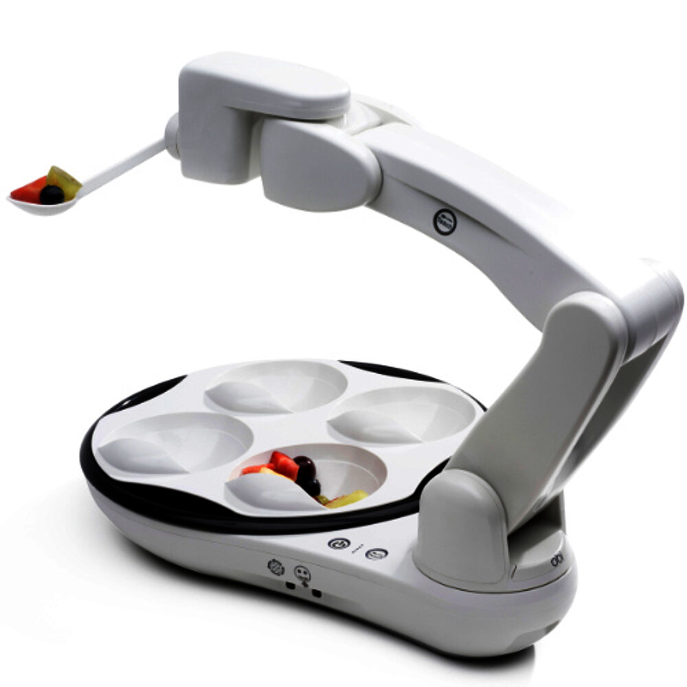 Obi è un rivoluzionario ausilio per l'alimentazione che consente alle persone con mobilità limitata o nulla degli arti superiori di vivere un'esperienza alimentare piacevole e dignitosa. Il controllo da parte dell'utente sulla selezione del cibo e sulla velocità di consumo rende il momento del pasto di nuovo un piacere, non più un lavoro di routine. Obi è facile da usare, portatile e ideale per essere utilizzato a casa o in viaggio, ad esempio al ristorante. Dopo un semplice processo di apprendimento, le quattro ciotole sono pronte per i diversi pasti. Il design moderno e il movimento realistico hanno un effetto positivo su utenti, famiglie, amici e assistenti. Obi è caratterizzato da una personalità sottile ed è facile da pulire. È pronto all'uso in pochi secondi, è dotato di rilevamento delle collisioni per la sicurezza dell'utente ed è portatile.