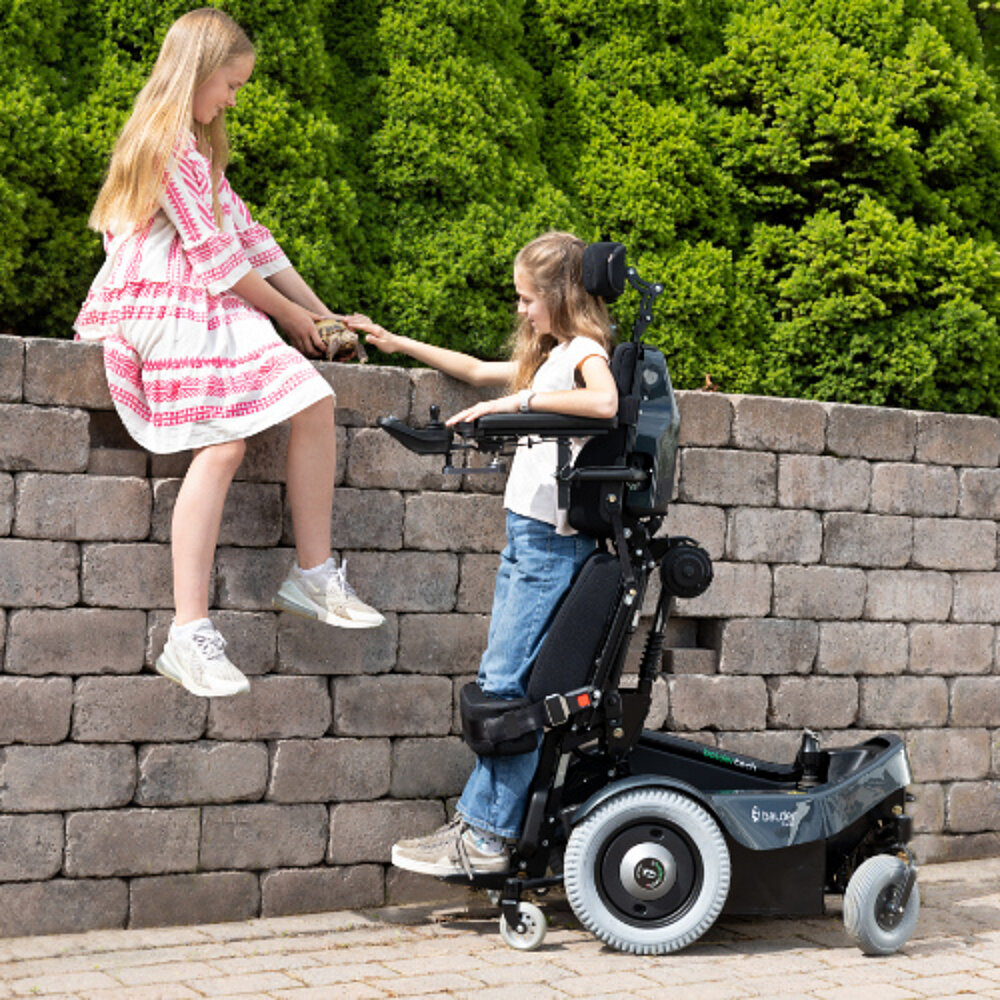Balder Junior è una carrozzina elettrica che cresce con il bambino e gli offre maggiore indipendenza. Offre numerose posizioni di seduta, tra cui un'elevazione di 80 cm e un abbassamento di 35 cm, nonché una posizione reclinabile e un'inclinazione in avanti e all'indietro. Il sedile e i poggiagambe regolabili si adattano alla crescita. Grazie alle 5 funzioni del sedile elettrico, tra cui il sollevamento rapido del sedile e l'inclinazione nello spazio, facilita l'ingresso e l'uscita dall'auto. È disponibile una funzione opzionale per la posizione eretta, la cui velocità può essere regolata con il joystick.