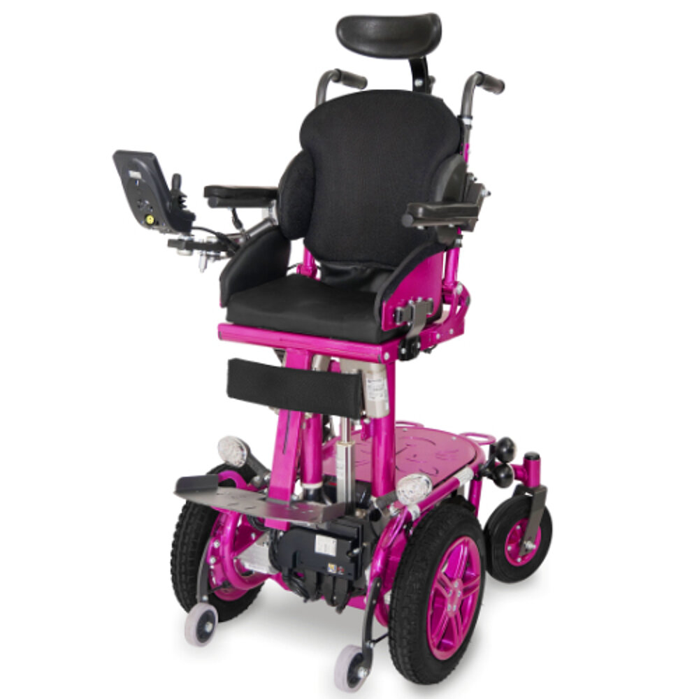 Eccezionalmente non è una sedia a rotelle con funzione eretta, ma è sempre dotata di un rialzo per il sedile. Il design è stato studiato su misura per le persone di piccola statura. Ma offre tutte le opzioni di regolazione e le varianti di controllo. Per i piccoli che vogliono unirsi ai grandi nel loro tour in bicicletta sono disponibili batterie speciali che consentono una lunga autonomia nonostante lo spazio limitato a disposizione.