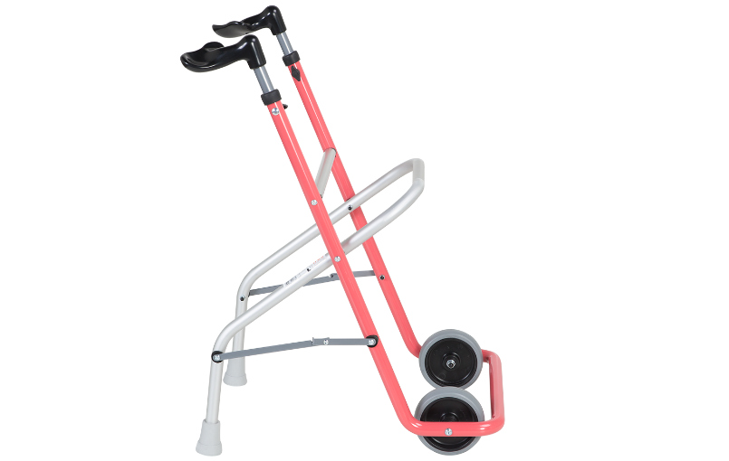 Il telaio pieghevole consente di trasportarlo facilmente e di riporlo con poco ingombro. Le ruote interne da 120 mm rendono il deambulatore ideale per gli spazi ristretti, mentre i puntali in gomma antiscivolo da 20 mm garantiscono una maggiore sicurezza.