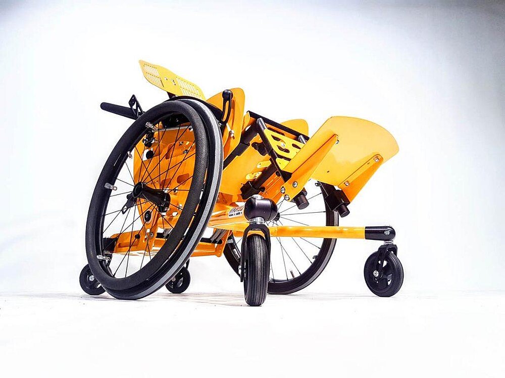 CHILLIE è una carrozzina adattiva inclinabile con sedile girevole per bambini e ragazzi attivi.