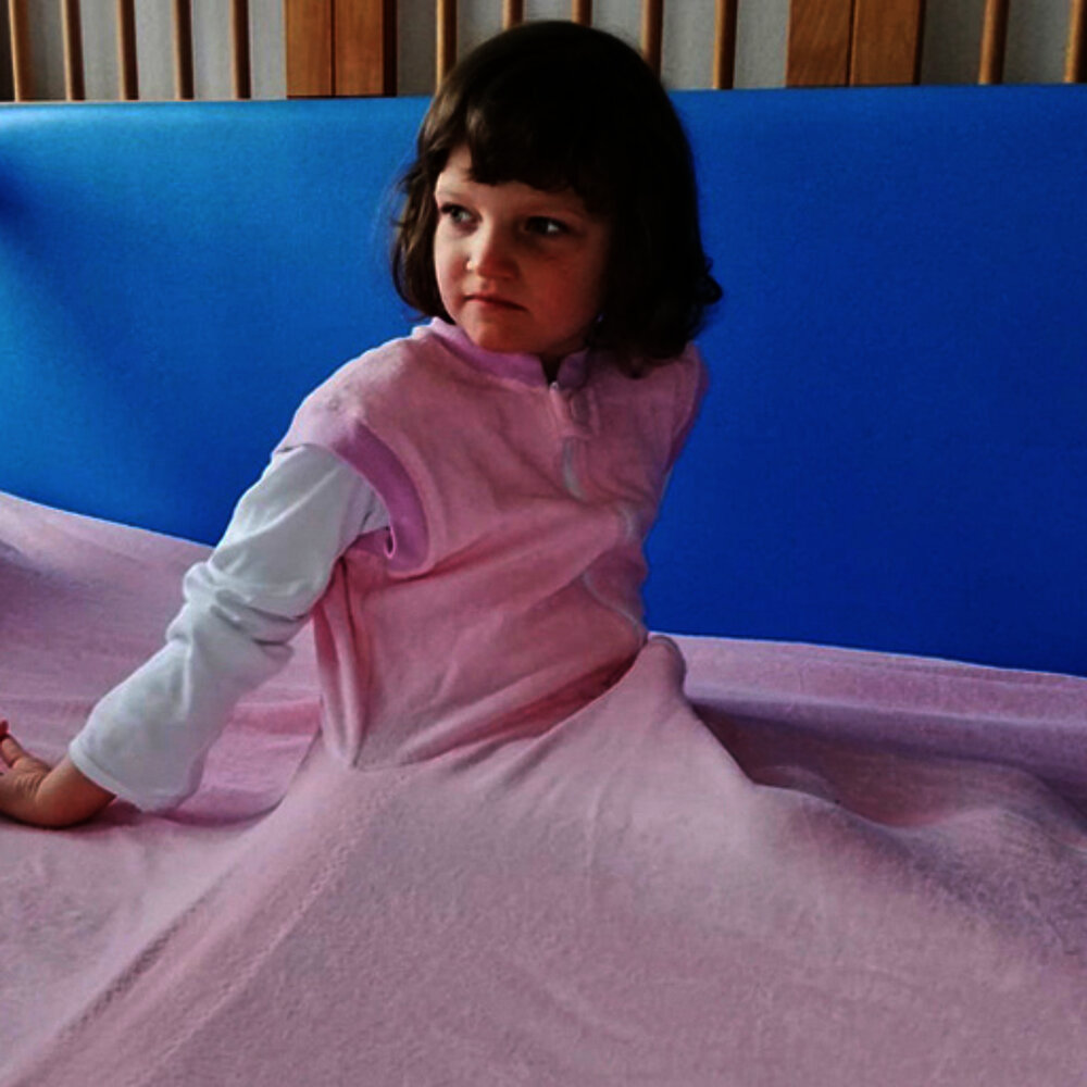 La coperta fissa è un'opzione di sonno ideale per i bambini con disabilità. Il bambino si infila nella coperta fissa, come in un sacco a pelo.