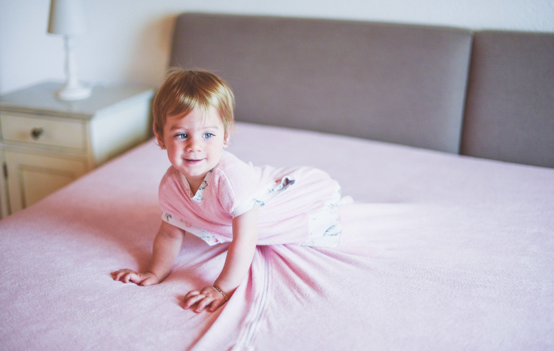 Il bambino ha un'ampia libertà di movimento e può girarsi e sedersi. Una coperta fissa può essere impacchettata e portata ovunque e si adatta a qualsiasi letto normale (90 cm/200 cm). È disponibile in molte misure e per diversi formati di materasso.