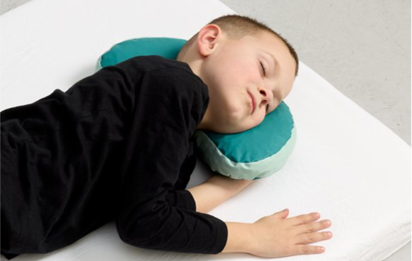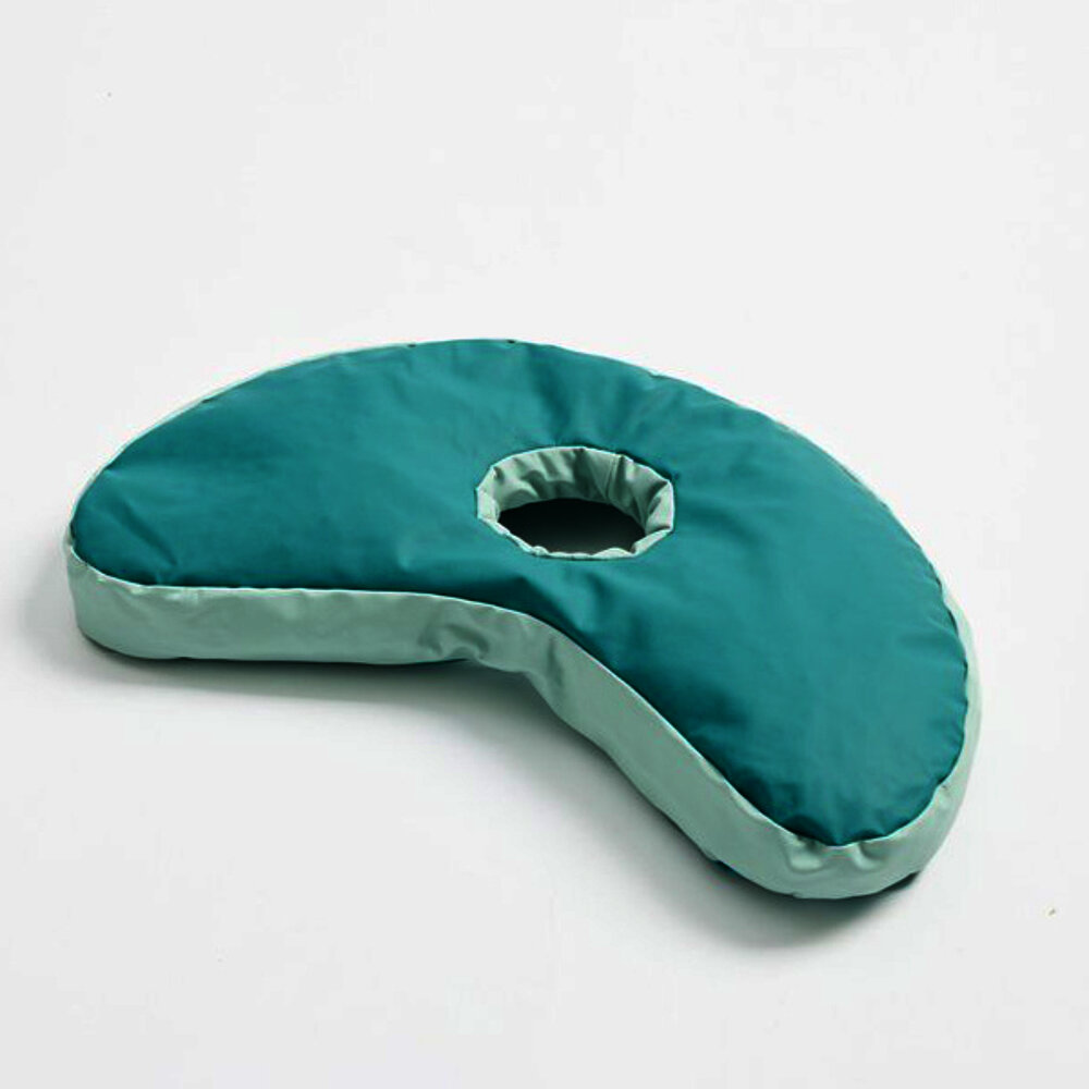 Il cuscino può essere utilizzato sia in posizione supina che laterale. In posizione laterale, evita la pressione sull'orecchio e allo stesso tempo stabilizza la testa. La sua forma lo rende adatto anche per esporre aree più piccole, in particolare prominenze ossee, sonde o pompe, distribuendo la pressione in modo uniforme intorno all'area sensibile.