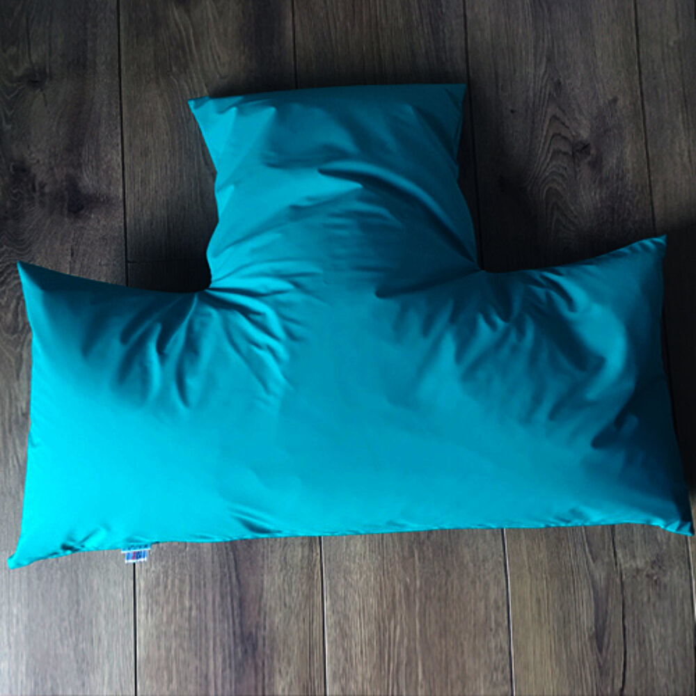 Il cuscino a T per il posizionamento della gamba con cuneo di abduzione è riempito con perle di polipropilene. Viene fornito di serie con un rivestimento interno in PhysioTex bianco e un rivestimento esterno in PhysioTex verde, entrambi con cerniera. In alternativa, il rivestimento esterno può essere scelto in cotone PEDRO (blu) o con una stampa colorata. Disponibile in tre misure.