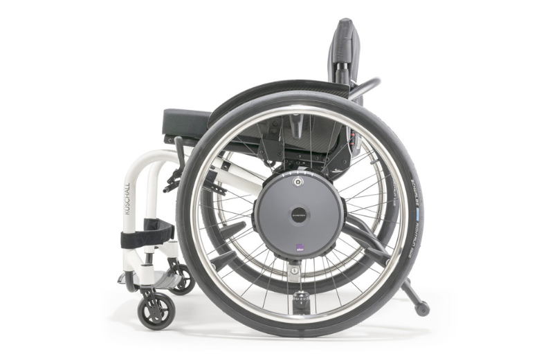 L'e-motion push rim drive offre alle persone in sedia a rotelle un supporto potente e combina la mobilità attiva con i benefici terapeutici. Grazie ai motori elettrici integrati nei mozzi delle ruote, anche le persone con forza limitata possono muoversi autonomamente. Ciò significa che è necessaria meno forza per superare distanze o pendenze maggiori, aumentando in modo significativo il raggio d'azione dell'utente.