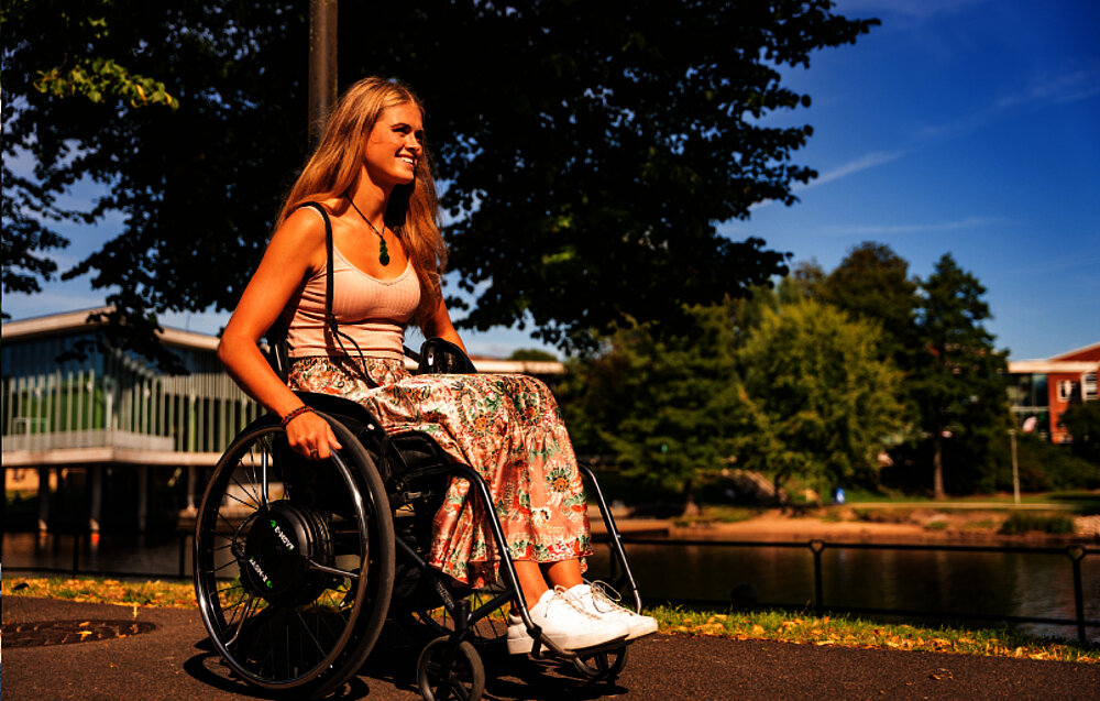 E-Move è un azionamento elettrico a spinta per sedie a rotelle manuali che supporta efficacemente il movimento di spinta e riduce lo sforzo su muscoli e articolazioni. Le persone in sedia a rotelle possono così coprire distanze più lunghe senza sforzo e godere di maggiore libertà e mobilità.