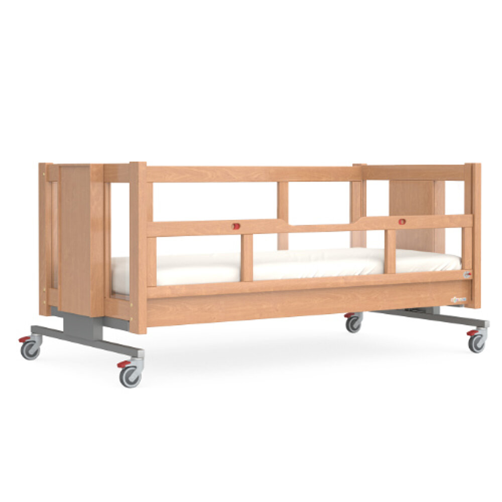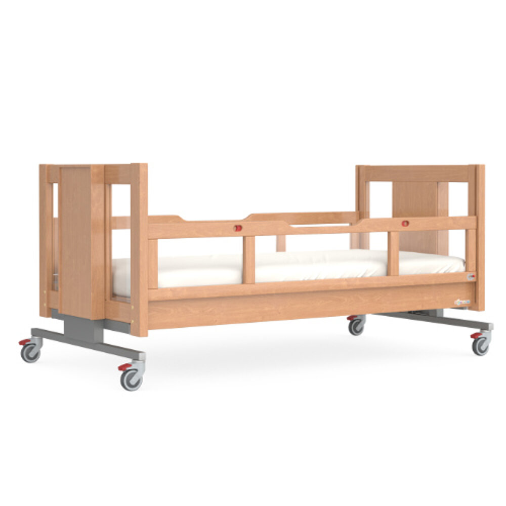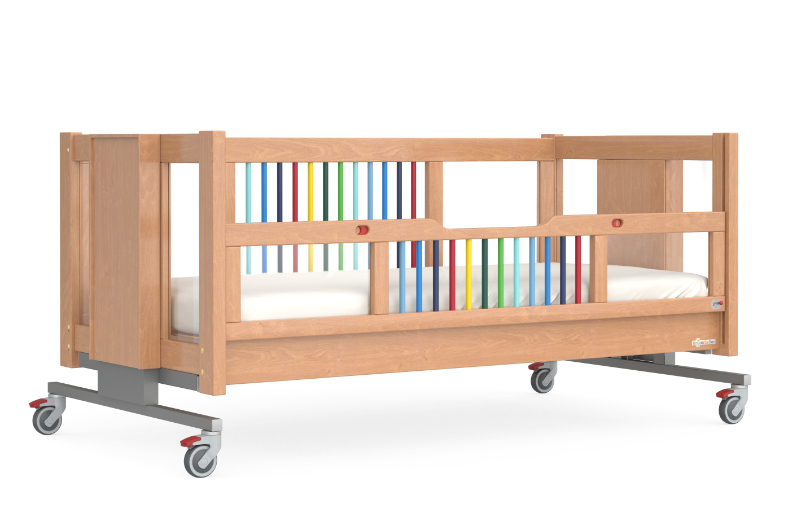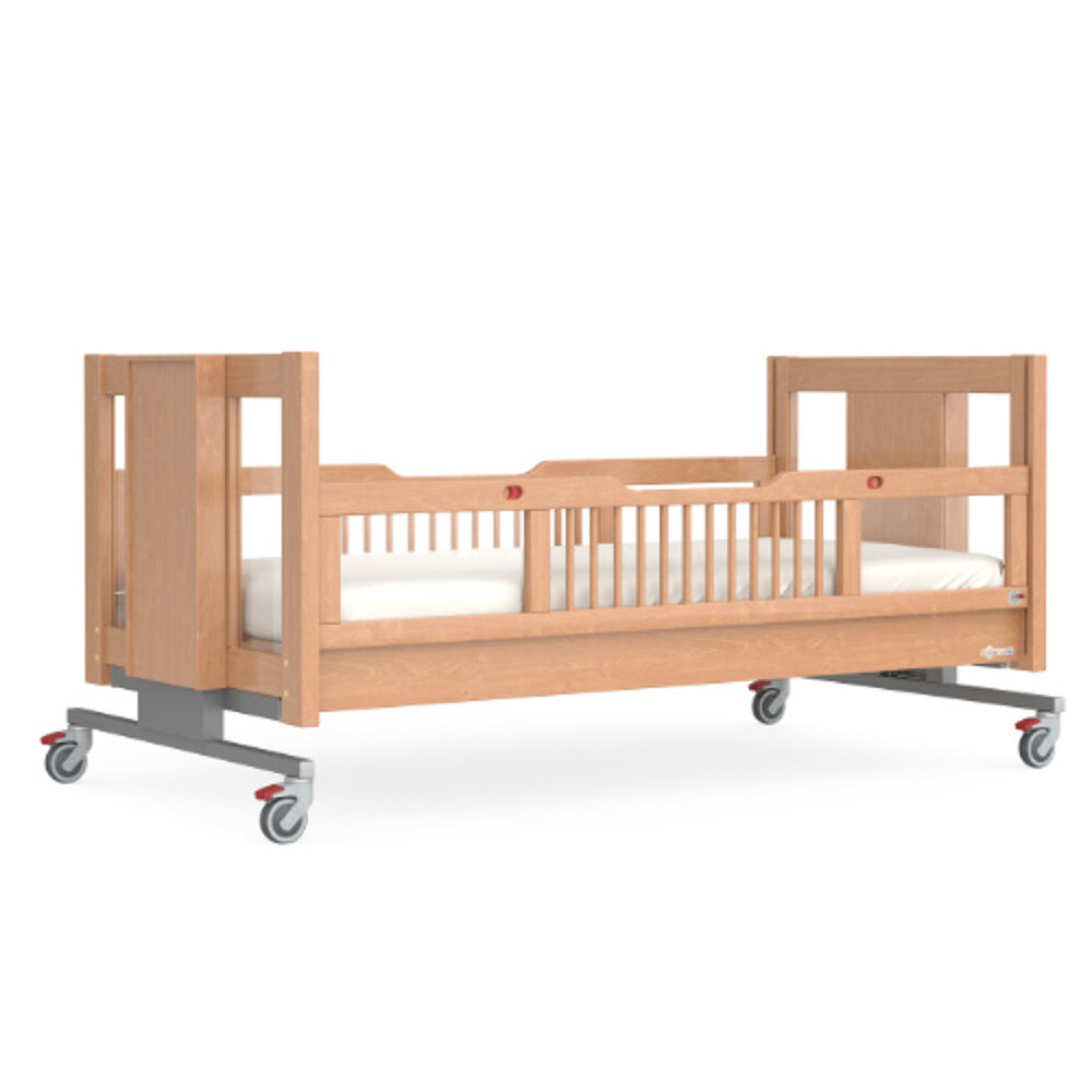 Come IDA ed EMMA 1, anche EMMA 2 è molto adatto per la cura intensiva di bambini gravemente compromessi. EMMA 2 offre un grande valore aggiunto, soprattutto se il bambino non è in grado di stare seduto da solo (ad esempio a causa di tetraparesi, tetraspasticità, ipotonia muscolare o stato vegetativo). Il modello è dotato di sponde ribassate che proteggono i bambini con capacità motorie ridotte dalla caduta. Le sponde possono essere abbassate su uno o due dei lati lunghi, in modo da consentire un intervento rapido attraverso le sponde in caso di emergenza. Grazie alla regolazione in altezza da 45 cm a 105 cm (bordo superiore del materasso), EMMA 2 è ideale per la cura e la terapia. Il modello offre sempre un'altezza regolata in modo ergonomico. EMMA 2 offre un accesso ideale agli assistenti in sedia a rotelle grazie all'accessibilità di 66 cm.