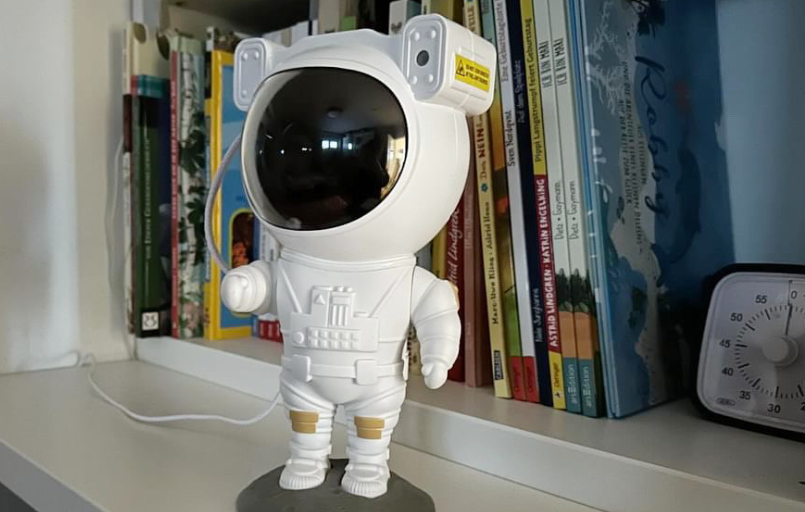 Kopf/Helm ist frei beweglich wodurch man die Projektion genau ausrichten kann.