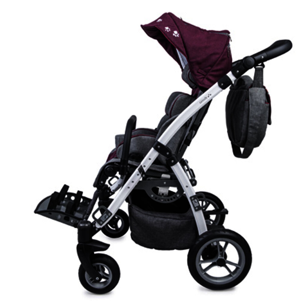 Il passeggino da riabilitazione offre numerosi vantaggi e funzioni. Grazie alle ampie possibilità di regolazione, può crescere con il bambino per molto tempo. Il design sportivo è perfetto per l'uso quotidiano. Il sedile rialzato offre al bambino una migliore visione d'insieme. Il sedile può essere inclinato per ottenere una posizione di seduta rilassata ed ergonomica e una posizione di riposo. La direzione di visione del bambino può essere modificata (in direzione del viaggio o del contatto visivo con l'accompagnatore). Lo schienale può essere abbassato all'indietro per assumere una posizione reclinata per il riposo. Anche il poggiapiedi può essere regolato e ripiegato.