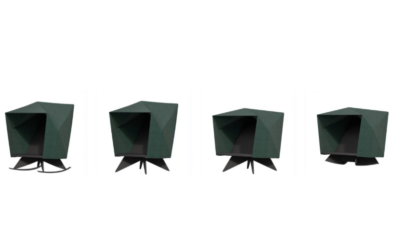 HabiCave ha la forma di una grotta che circonda e protegge dolcemente l'utente.