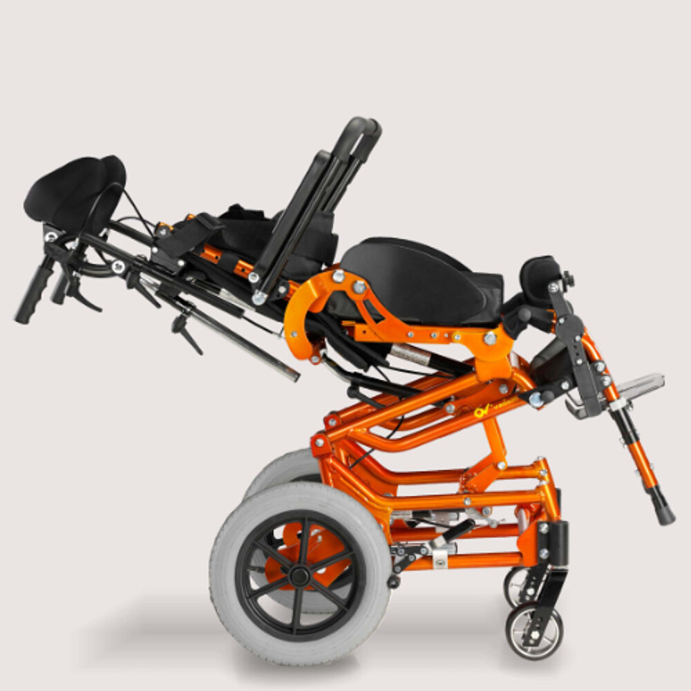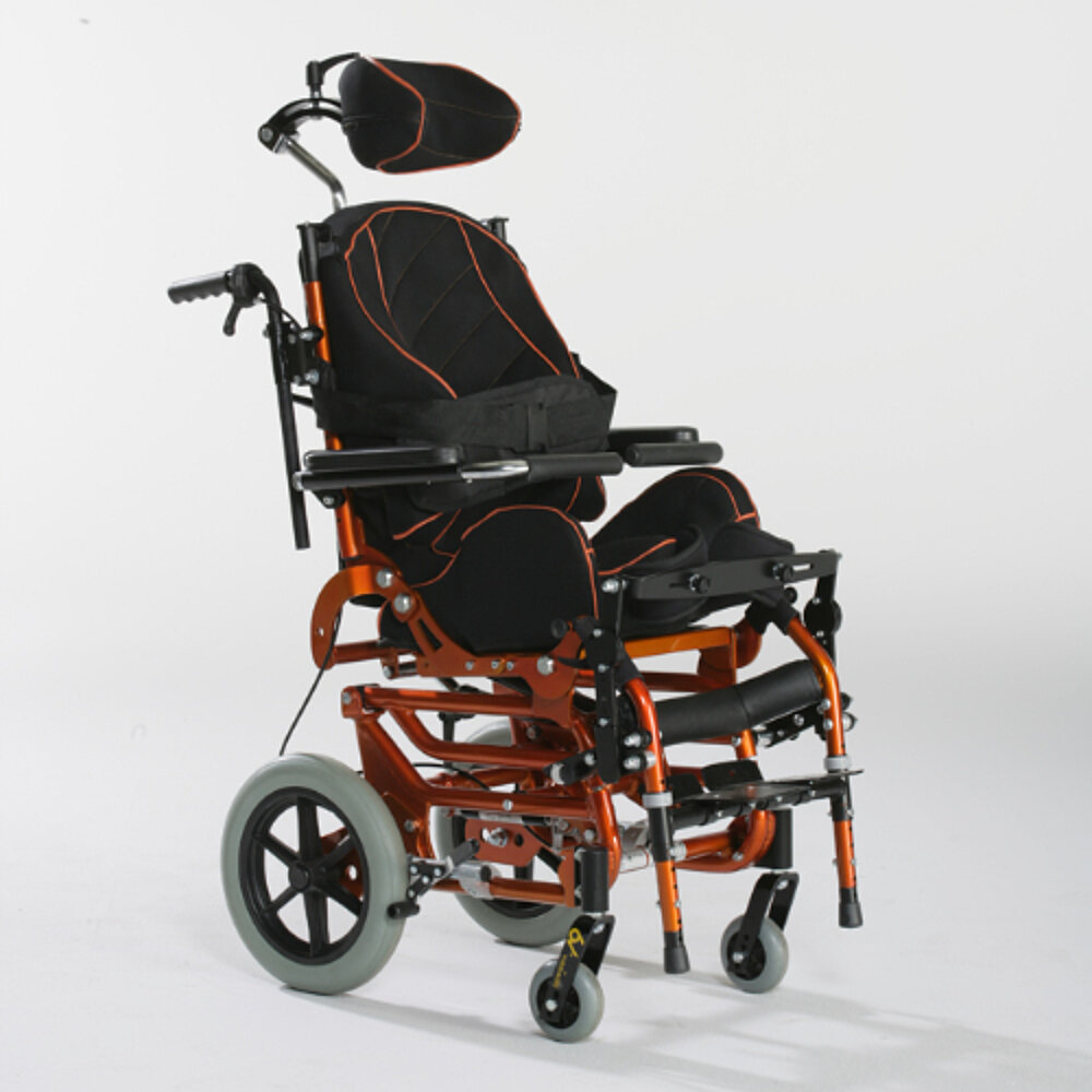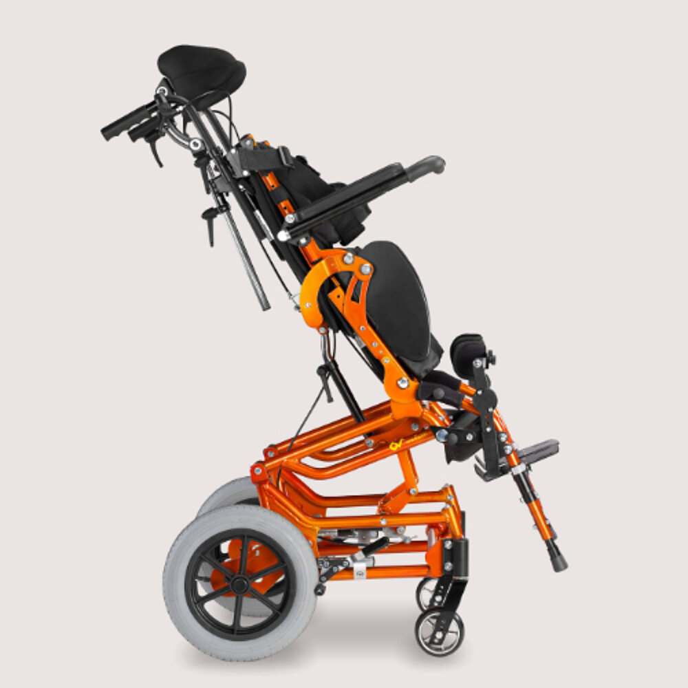 I bambini con maggiori esigenze di posizionamento utilizzano HILO BAMBY PLUS. La regolazione dello schienale e dell'angolo di seduta sono di serie, oltre alla funzione standing. È possibile regolare l'angolo delle gambe. Il punto di rotazione dello schienale è stato spostato in avanti, in modo da poter utilizzare anche la scocca del sedile.