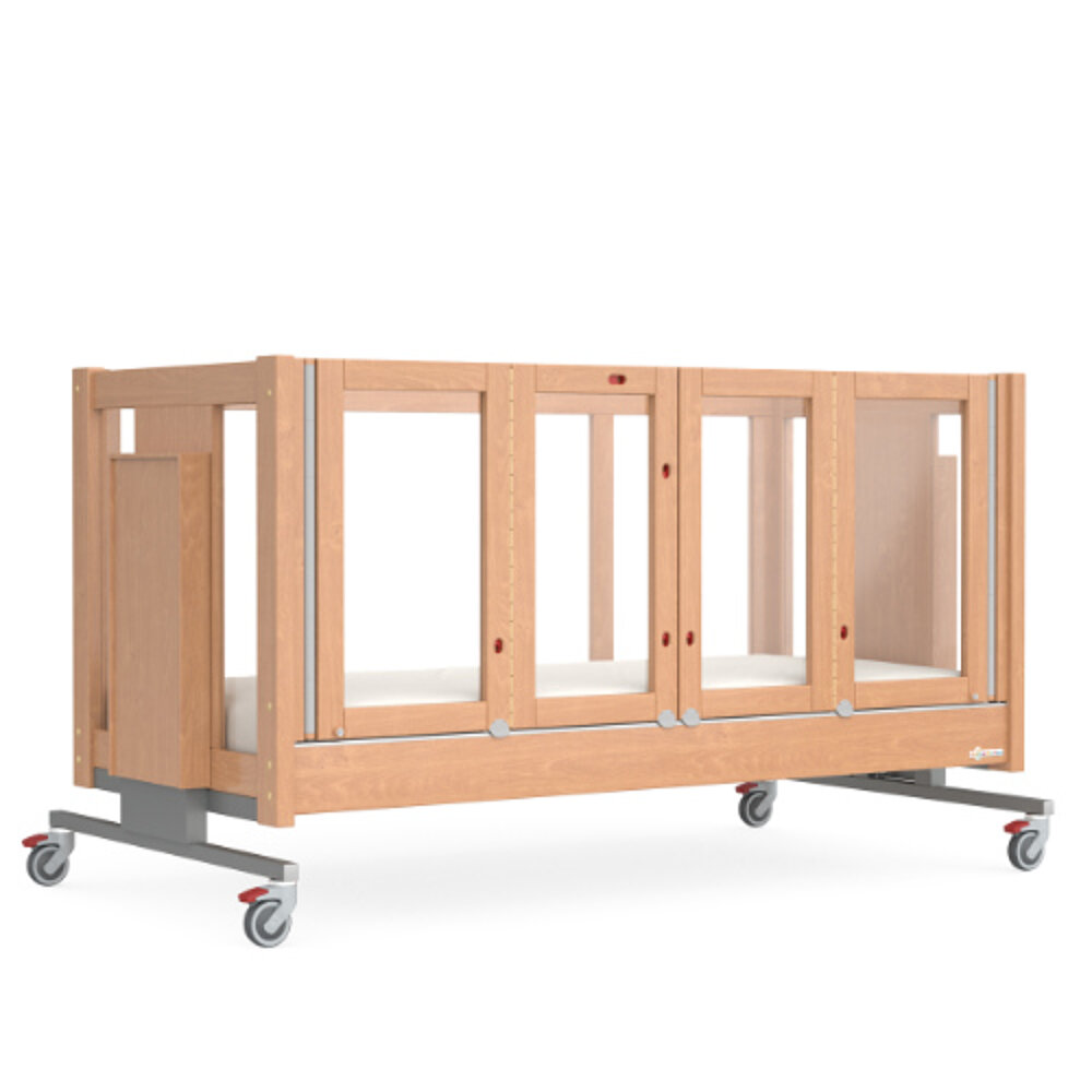 L'IDA di KayserBett è adatto a bambini e adolescenti con varie disabilità e offre anche opzioni di cura ottimali per le persone in sedia a rotelle grazie all'accessibilità di 66 cm. Grazie al montaggio parziale con lastre di vetro acrilico, i bambini possono partecipare attivamente all'ambiente. Il KayserBett IDA ha porte alte 80 cm, a scelta su uno o entrambi i lati lunghi. Questo protegge i bambini con capacità motorie irrequiete dall'entrare e uscire senza sorveglianza. Una speciale chiusura impedisce l'apertura delle porte dall'interno. Grazie alla regolazione in altezza da 45 cm a 105 cm (bordo superiore del materasso), il KayserBett IDA è ideale per la cura e la terapia ed è sempre ergonomico. Il KayserBett IDA può essere abbassato in modo da poter utilizzare anche gli ascensori.