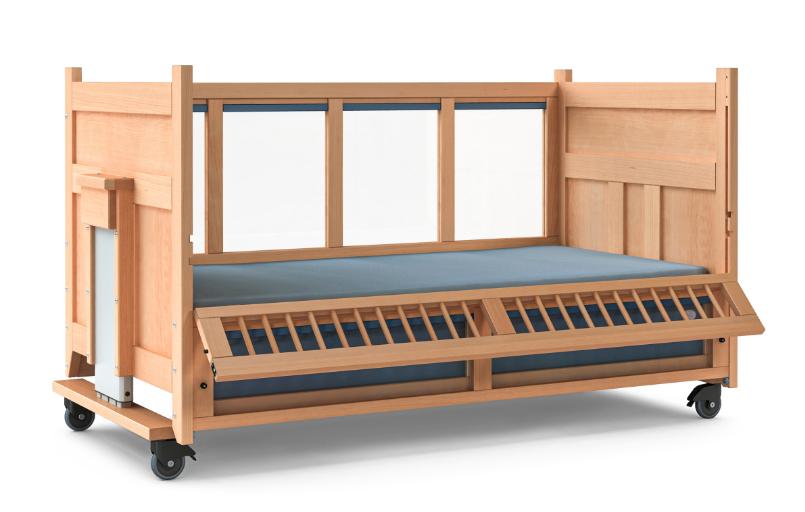 68 cm con un elemento aggiuntivo a ribalta nella parte anteriore, alto 60 cm e accesso ridotto (55-105 cm bordo superiore del materasso). JEREMIA Vario può essere regolato all'altezza di lavoro desiderata da genitori, assistenti o terapisti grazie ai due motori di sollevamento ai piedi e alla testa. Le integrazioni possibili sono Trendelenburg/anti-Trendelenburg e la regolazione elettrica della sezione testa e piedi, che favoriscono la terapia e il benessere del bambino. Che si tratti di imbottitura, guida del tubo del cavo, aste o vetro acrilico, Jeremia Vario offre tutte le opzioni possibili.