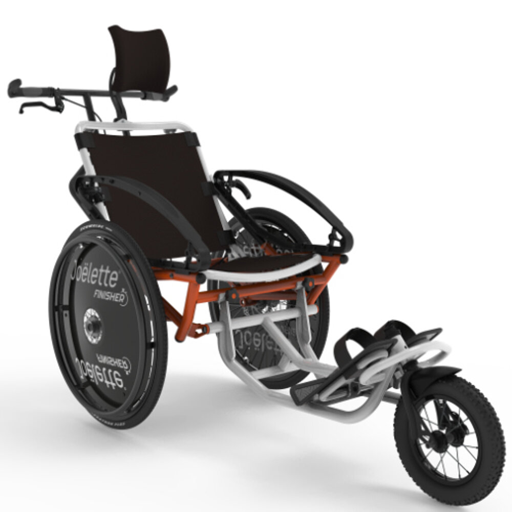 Questa carrozzina da corsa a tre ruote offre la stabilità e la manovrabilità necessarie per affrontare con facilità maratone in carrozzina e altre distanze. La Joëlette Finisher è ideale anche per camminare su strade e piste ciclabili. La sua struttura in alluminio e la sua leggerezza riducono lo sforzo e migliorano le prestazioni nelle gare in carrozzina e nelle maratone. È dotata di freni idraulici per una maggiore sicurezza. Una volta ripiegata, la carrozzina da corsa è estremamente compatta e facile da trasportare.