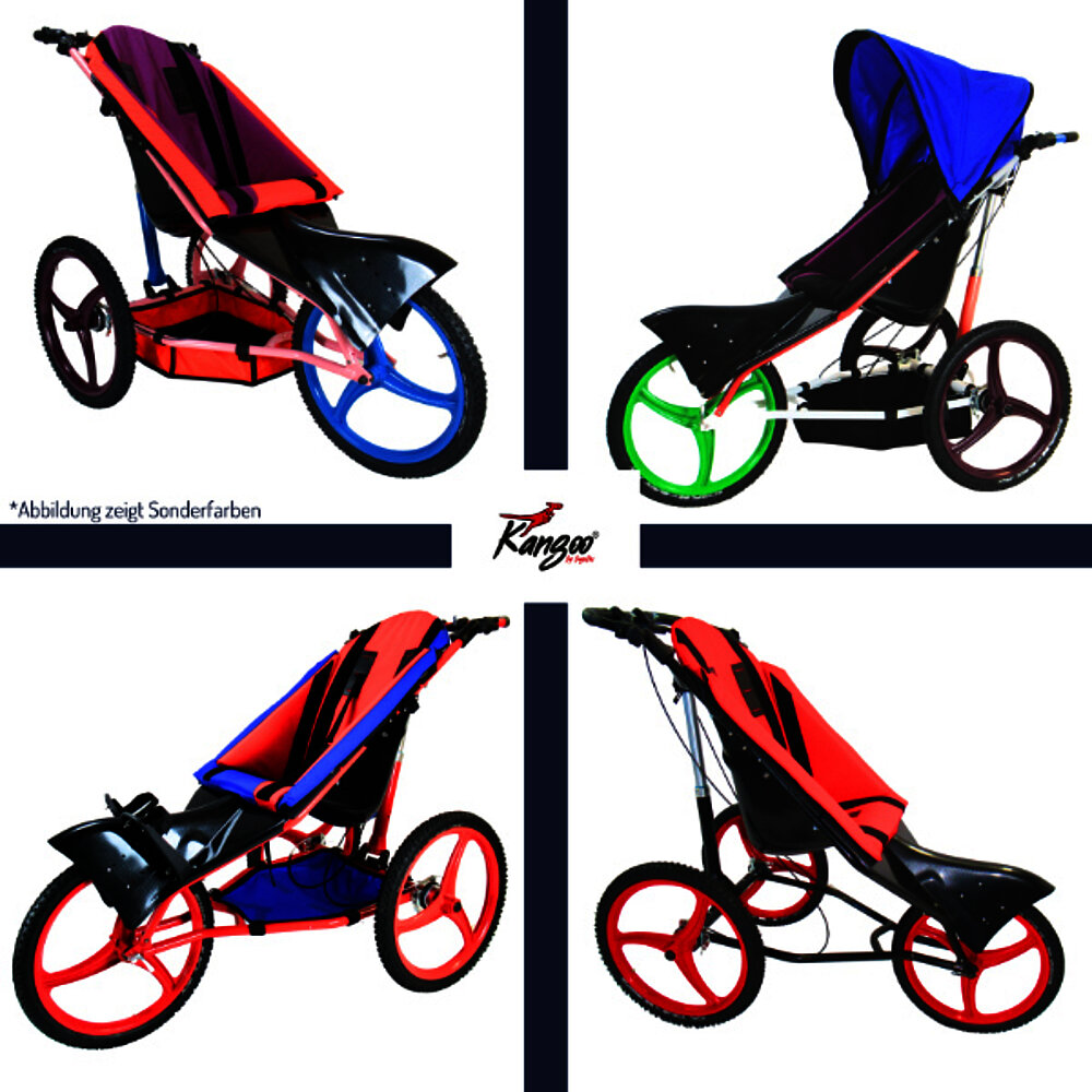Der Kangoo bietet uns und unserem Sohn genau das, was wir von einem guten Rehabuggy erwarten: Unser Sohn sitzt stabil, sicher und gemütlich (dank anklettbarer Polster, Pelotten und Kopfstütze). Wir können den Sitz kanteln, etwa wenn unser Sohn müde ist. Die Federung ist komfortabel. Die Füße stehen mit und ohne Orthesen sicher. Außerdem stimmen Funktionalität und Design. Wir haben den Buggy mit grünen Speichen und grauem Bezug.