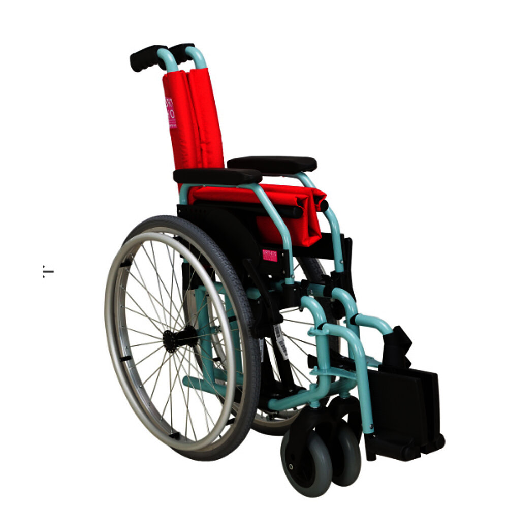 È possibile scegliere tra ruote posteriori da 550 mm (con pneumatici o gomme piene) e ruote anteriori in gomma piena da 150 mm. È disponibile anche un modello Transit con ruote posteriori da 300 mm, ideale per i bambini che non sono in grado di spingere la carrozzina autonomamente. La carrozzina è progettata per un peso massimo dell'utente di 125 kg ed è ideale per i bambini con mobilità limitata.