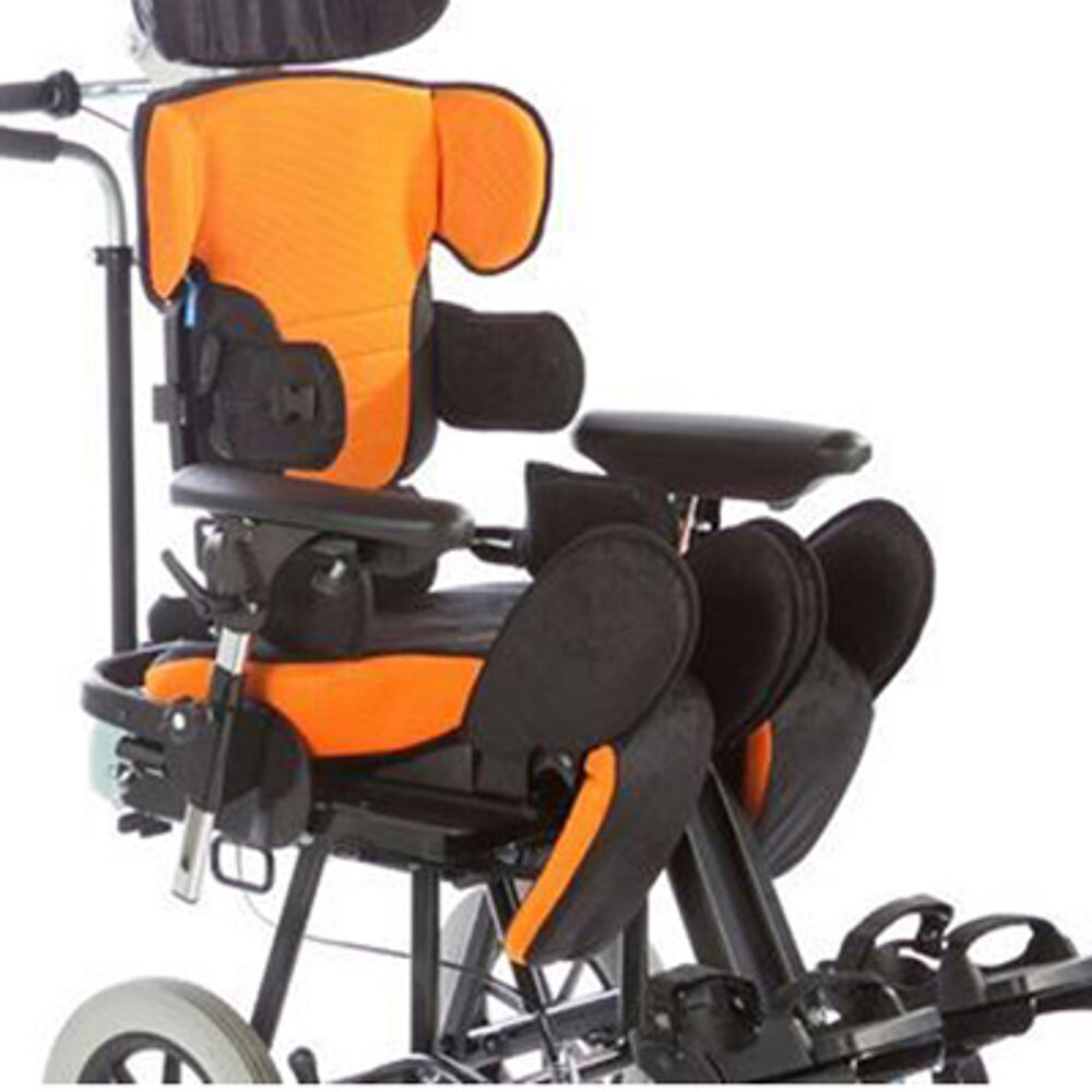 - cuscinetto sacrale flessibile in combinazione con l'angolo di seduta e la cintura addominale regolabili
