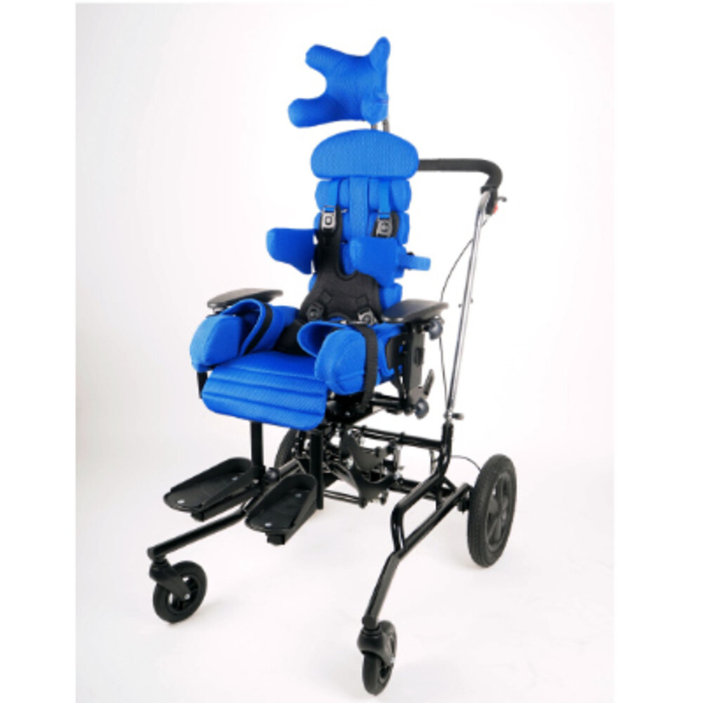Innovativa sedia terapeutica con schienale modellabile "Second Spine". Con i telai Hi-Low per uso interno o esterno, la seduta può essere regolata in continuo all'altezza del pavimento o del tavolo.