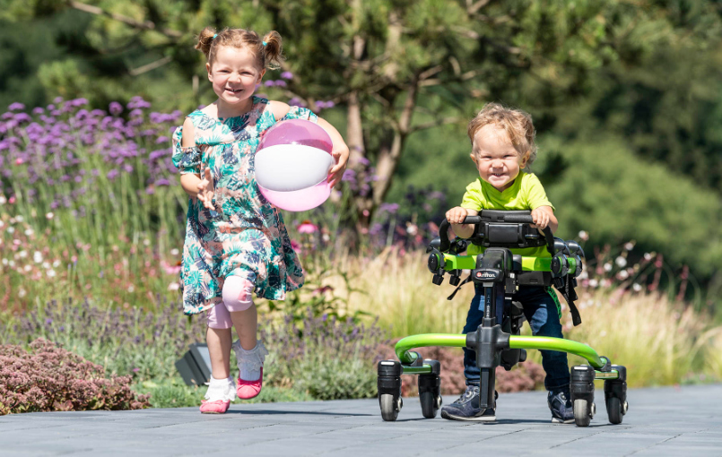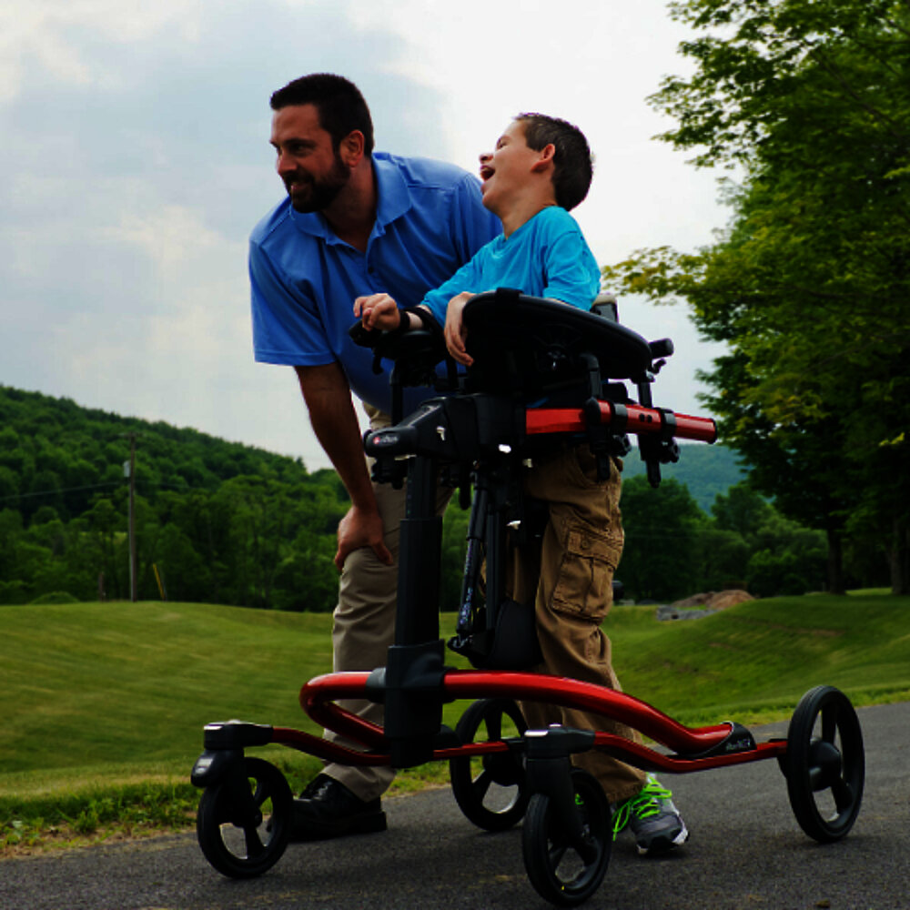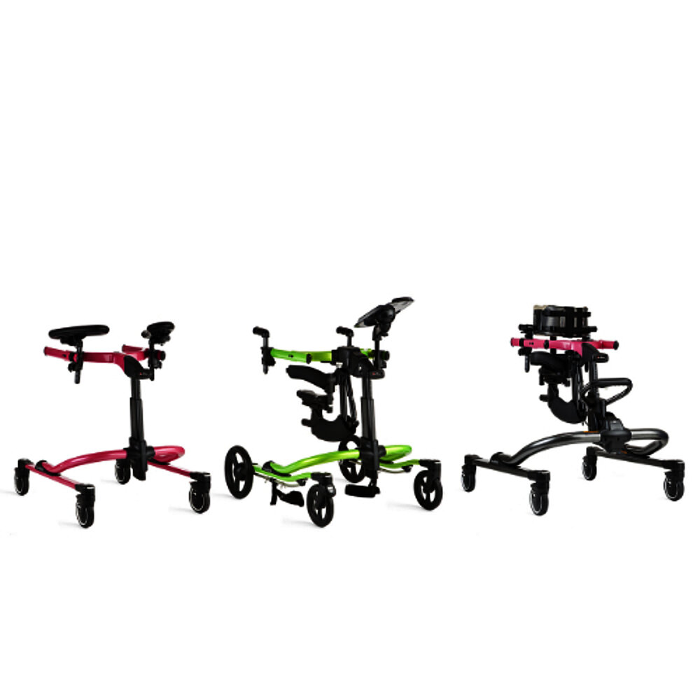 La molla a pressione di gas permette di regolare la colonna centrale in altezza e fornisce un sostegno in posizione eretta. Il telaio superiore dinamico offre un sostegno ottimale con un movimento verticale di 8 cm e orizzontale di 5 cm durante la deambulazione. Un distanziometro registra i progressi della terapia, mentre i blocchi direzionali aiutano a camminare in linea retta. Il supporto multifunzionale per il tronco può essere regolato in profondità, altezza e angolazione. Il telaio superiore nelle misure 2+3 può essere rimosso dal telaio di base standard e montato sul telaio di base combi o treadmill per offrire una maggiore varietà. Le ruote con freno di levigatura, arresto di ritorno, freno di stazionamento e blocco direzionale garantiscono maggiore mobilità e sicurezza. Il design leggero e stabile garantisce un'andatura ottimizzata, mentre i supporti imbottiti sotto le ascelle assorbono parte del peso corporeo. La sella multiposizione si adatta rapidamente alla posizione del bacino.