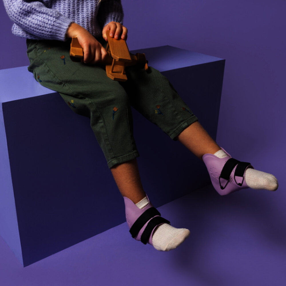 Per i bambini affetti da paralisi cerebrale e patologie simili, un AFO (ortesi caviglia-piede) e un SMO sono un aiuto straordinario per migliorare la mobilità e il controllo. Purtroppo, la maggior parte di queste ortesi sono pesanti e ingombranti. Nelle nostre strutture cliniche trattiamo molti bambini con AFO e SMO. Abbiamo sperimentato in prima persona quanto sia difficile per i piccoli pazienti infilare le pesanti ortesi nelle scarpe.