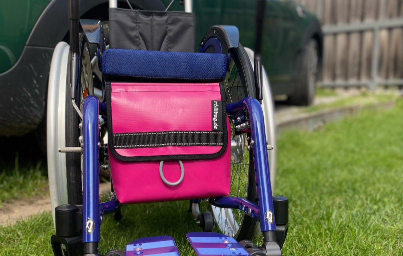La rollibag.de è una speciale borsa per sedie a rotelle che viene fissata sotto la sedia a rotelle. È stata sviluppata per aiutarvi nella vita di tutti i giorni, rendendo facilmente accessibili i vostri oggetti di valore o i vostri farmaci. È estremamente facile da fissare sotto la sedia a rotelle e la carrozzina rimane pieghevole.