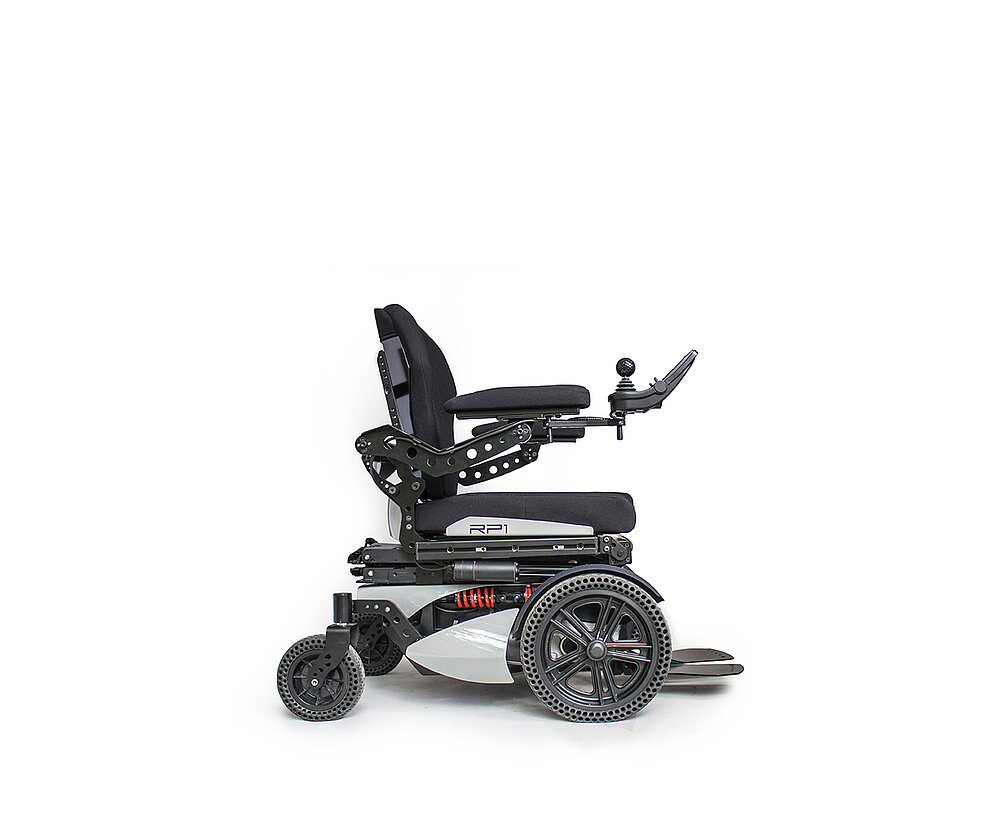 La carrozzina elettrica RP1 è dotata di un sollevatore elettrico del sedile. Ulteriori funzioni elettriche sono disponibili a pagamento.