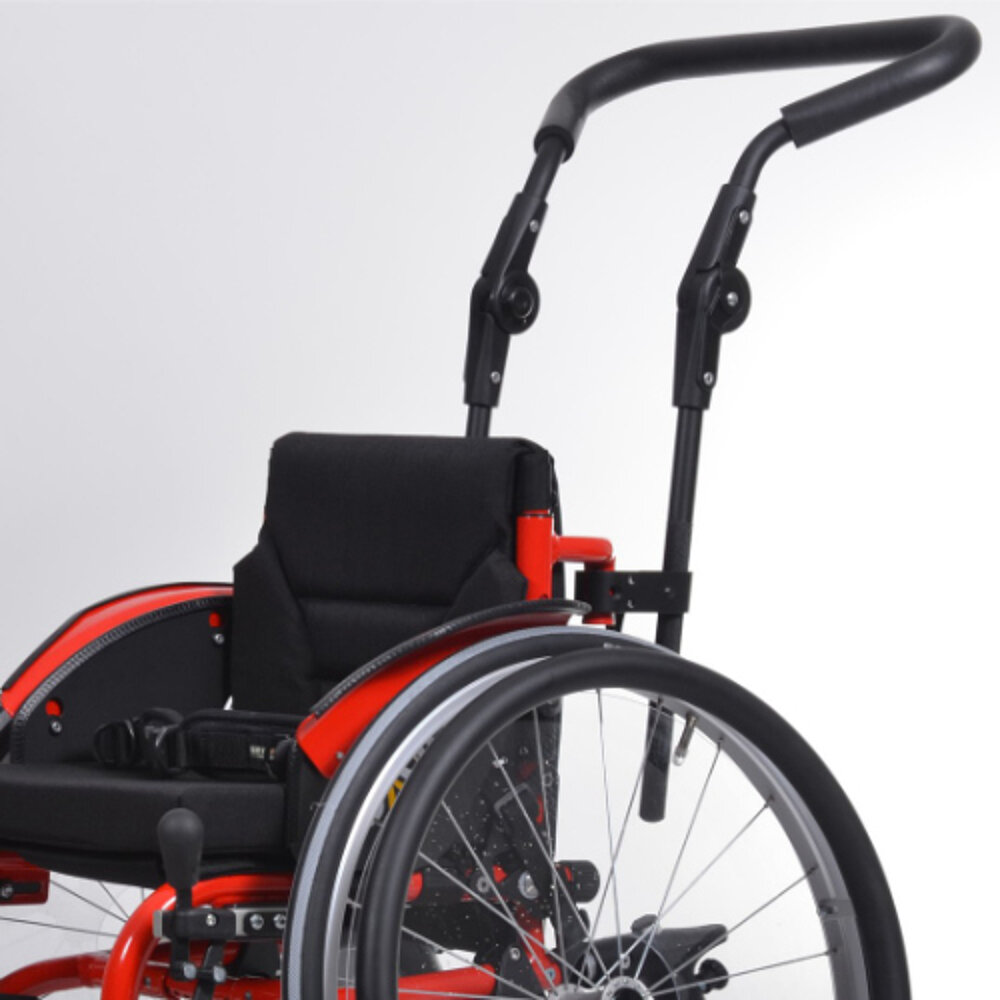 SAGITTA Kids è una carrozzina attiva per bambini che corrisponde al modello Sagitta per adulti. Ha un sedile regolabile in altezza, una protezione per i vestiti, maniglie di spinta regolabili in altezza e una pratica rete per la spesa. Le ruote posteriori sono dotate di meccanismi di sgancio rapido. Con un peso totale di soli 9 kg e una larghezza della seduta di 24-34 cm, offre una soluzione di mobilità leggera e flessibile per i bambini.