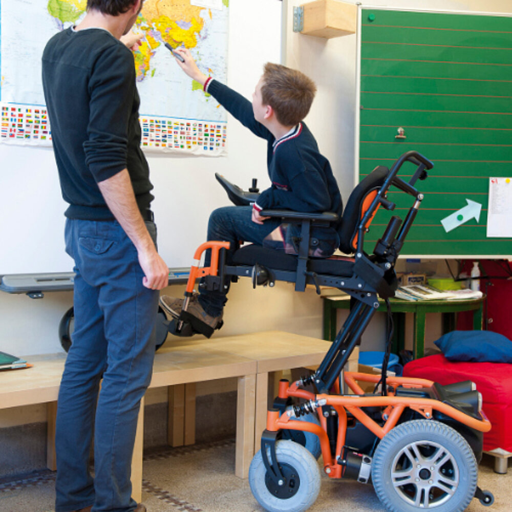 La sedia a rotelle elettronica per bambini con funzione di sedile sollevabile, nota come Springer, è stata appositamente progettata per l'uso all'aperto. Le sue quattro ruote garantiscono un contatto costante con il suolo, indipendentemente dalle irregolarità del terreno. Lo Springer supera senza problemi dislivelli fino a 120 mm, rendendolo particolarmente adatto all'uso in fuoristrada.