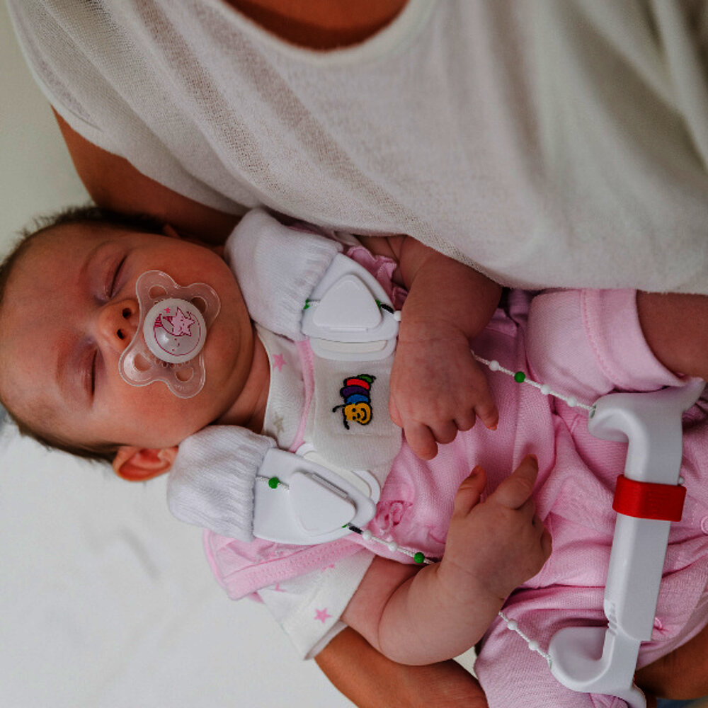 La stecca fa sì che le articolazioni dell'anca del bambino si pieghino con un angolo di oltre 90° e si divarichino leggermente. Anche se all'inizio può sembrare insolito, si tratta semplicemente di un prolungamento della fase prenatale. Ciò consente alle anche del bambino di maturare nelle stesse condizioni favorevoli del grembo materno.