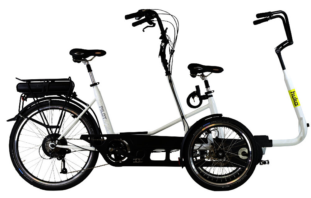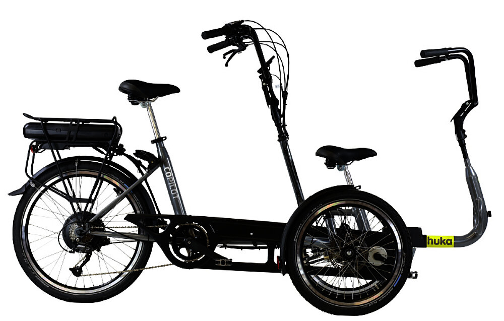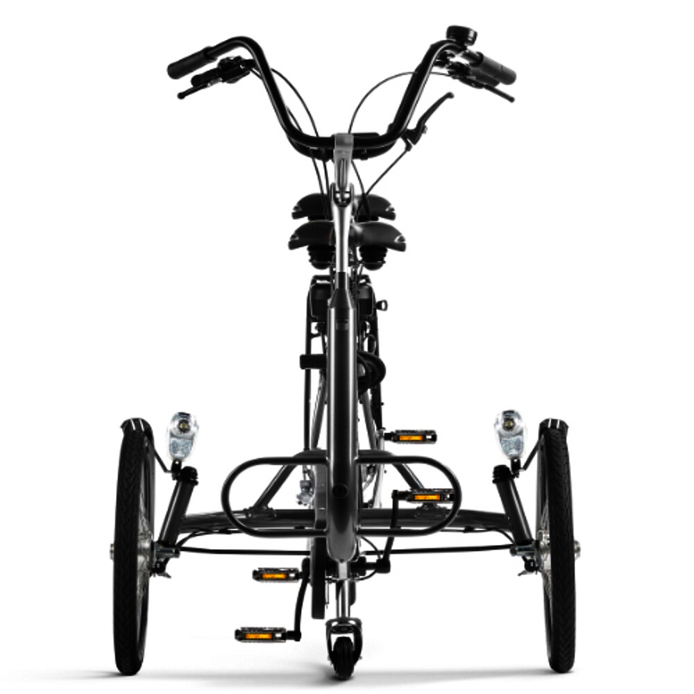 Grazie alla terza ruota, entrambi i ciclisti possono sedersi comodamente, anche da fermi. Salire e scendere è facile grazie all'elevato livello di stabilità. La parte anteriore può essere ripiegata per ottenere più spazio quando si sale e si scende. L'accompagnatore si occupa dello sterzo, mentre il passeggero ha un manubrio a cui aggrapparsi. L'accompagnatore sceglie la ruota libera inseribile, che consente al passeggero di pedalare. La ruota libera normale permette al passeggero di scegliere se pedalare o meno. Un tandem che permette di pedalare insieme senza preoccuparsi della sicurezza.