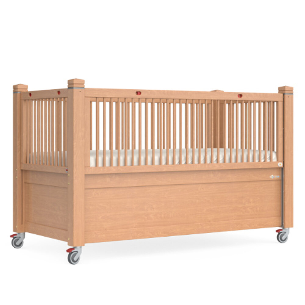 TIMMY 1 EasyLift ha lo stesso design di base del modello TIMMY 1, con l'aggiunta di guide di abbassamento particolarmente facili da usare su uno o due lati lunghi. Questo rende il KayserBett molto adatto a genitori e assistenti con limitazioni fisiche. Una volta sbloccata, la guida di abbassamento può essere spostata verso l'alto o verso il basso praticamente senza sforzo. La ringhiera è mantenuta in qualsiasi posizione da contrappesi. Per bloccare, la griglia viene spostata al punto di blocco successivo, dove si innesta. Ciò avviene grazie a un sistema meccanico esente da manutenzione situato nei montanti in legno massiccio.