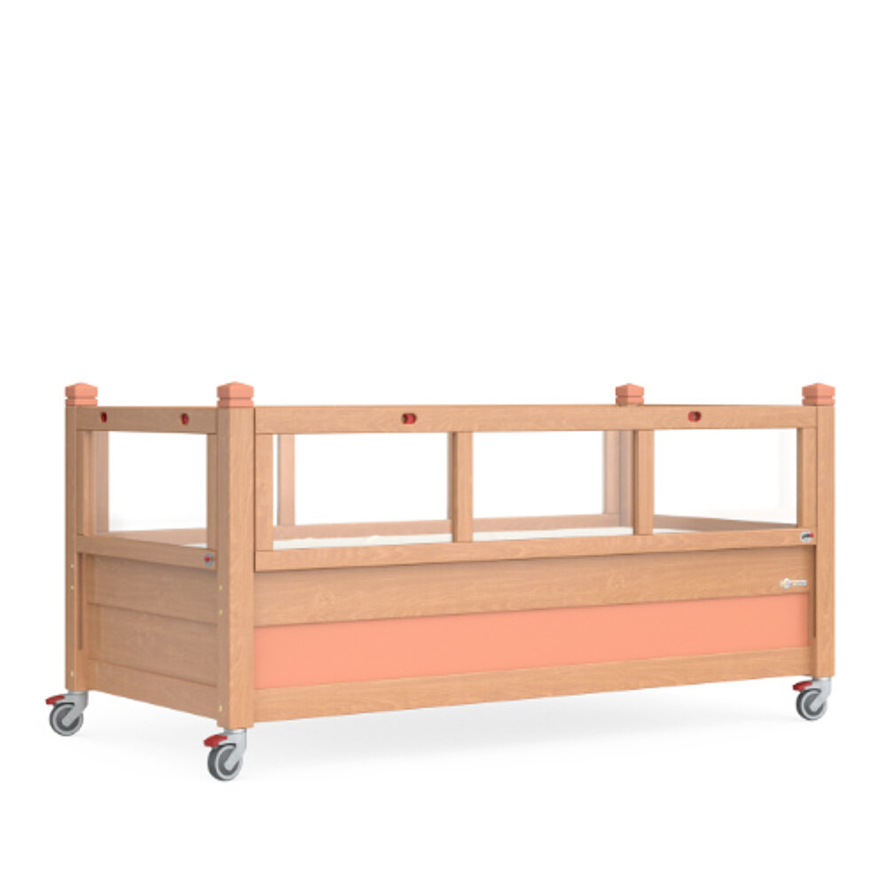 Il TIMMY di KayserBett è progettato per i bambini con gravi disabilità. Alcuni esempi sono: Tetraspasticità, ICP, ipotonia muscolare o tetraparesi. Grazie al suo design speciale, il letto per terapia intensiva è adatto anche a bambini e adolescenti che non sono in grado di sedersi autonomamente o a pazienti in coma. Il letto Kayser TIMMY è disponibile in due versioni, che si differenziano per l'altezza delle barre. TIMMY 1 ha un'altezza di 65 cm e TIMMY 2 ha un'altezza di 43 cm. In entrambe le versioni, tutte e quattro le sponde laterali possono essere abbassate in diverse posizioni. Le misure di cura possono quindi essere eseguite anche dalla testiera o dalla pediera. Il sistema motorizzatoLa regolazione motorizzata dell'altezza tramite un telaio con inserto elettrico consente di ottenere l'altezza di cura ergonomica ottimale per la terapia. I montanti rimovibili, come elemento opzionale, consentono un utilizzo ottimale come letto terapeutico. Un altro accessorio importante sono i montanti guida-tubo, utilizzati ad esempio per la ventilazione e la nutrizione. Tutti i letti Kayser TIMMY sono dotati di serie di ruote con freno alte 13,5 cm e possono quindi essere spostati in modo flessibile.