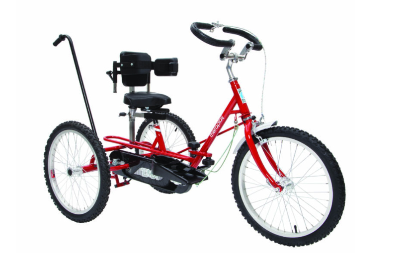 Il TMX è un triciclo stabile e scorrevole con ruote da 20" e freni a pinza con funzione di parcheggio. È stato sviluppato appositamente per i bambini più grandi e ha una trasmissione leggera e rigida per facilitare la pedalata.