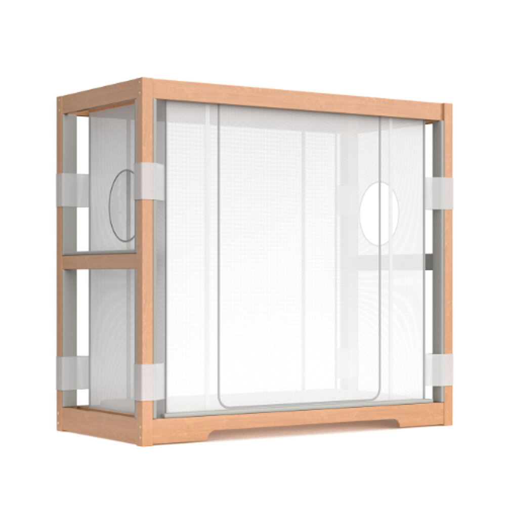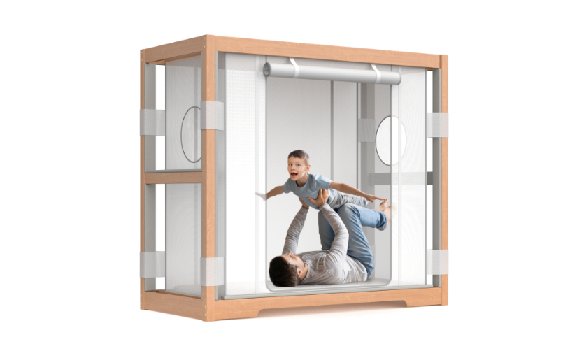Il nostro modello TOBI è stato realizzato appositamente per i bambini molto attivi e autoaggressivi. Questi bambini hanno bisogno di luoghi sicuri per proteggere se stessi e il loro ambiente. Il nostro KayserBett TOBI offre proprio a questi bambini un luogo in cui rifugiarsi. Il letto è costituito da una solida struttura in legno alla quale è appesa una rete. Questa rete, estremamente elastica, permette ai bambini di fare uno sforzo fisico completo e di tornare a riposare. La rete assorbe la forza dei colpi e dei calci, in modo da assorbire tutto l'impatto. Si può notare rapidamente come i bambini si rilassino di nuovo. Rispetto ai letti in cui i bambini sono a contatto diretto con il legno o il vetro acrilico, la rete all'interno del letto evita il forte contatto con i materiali. Il telaio in faggio massiccio viene assemblato e la rete viene fissata. La rete a maglia fine è quasi trasparente dall'interno all'esterno. Il letto ha un'altezza interna costante di 180 cm. Ciò significa che i bambini hanno spazio sufficiente per stare in piedi nel letto. La rete, che è anche ignifuga, non solo rende il letto un luogo accogliente per dormire, ma gli conferisce anche un'atmosfera molto familiare, simile a una tenda. In questo modo il nostro TOBI può diventare rapidamente un centro di avventure.