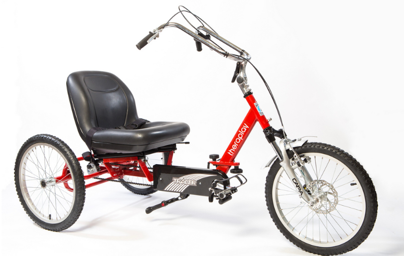 TRACER Junior - Triciclo con baricentro basso per un'eccellente stabilità, ingresso basso e ampio sedile regolabile per un facile montaggio e smontaggio. Adatto a partire da 8 anni. Robusto telaio in tubi ovali con meccanismo di ripiegamento o separazione per facilitare il trasporto e lo stoccaggio. Forcella anteriore con sospensione, freni a disco e a V per un'elevata potenza di frenata e comfort, attacco manubrio EZ-Access regolabile per raggiungere il braccio e facilitare l'accesso, due leve dei freni, una con funzione di parcheggio. Pedali davanti alla sella con funzione di autobilanciamento e fermi per le dita dei piedi, sella regolabile su binari per diverse lunghezze di gambe e rimovibile per il trasporto. Varie opzioni di trasmissione: Cambio fisso, ruota libera, Option Drive o il nuovo cambio al mozzo a 5 velocità.