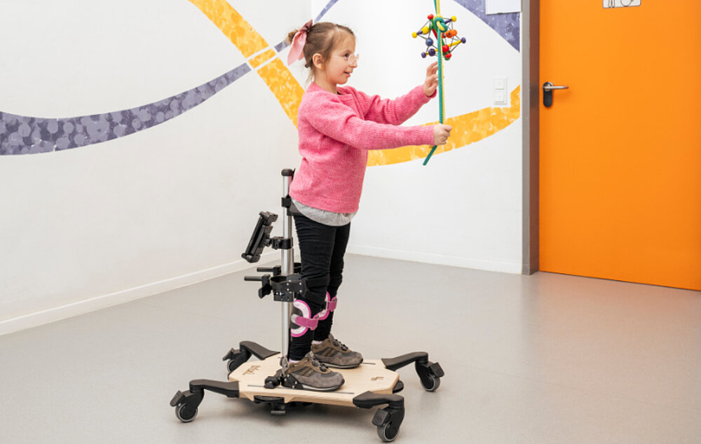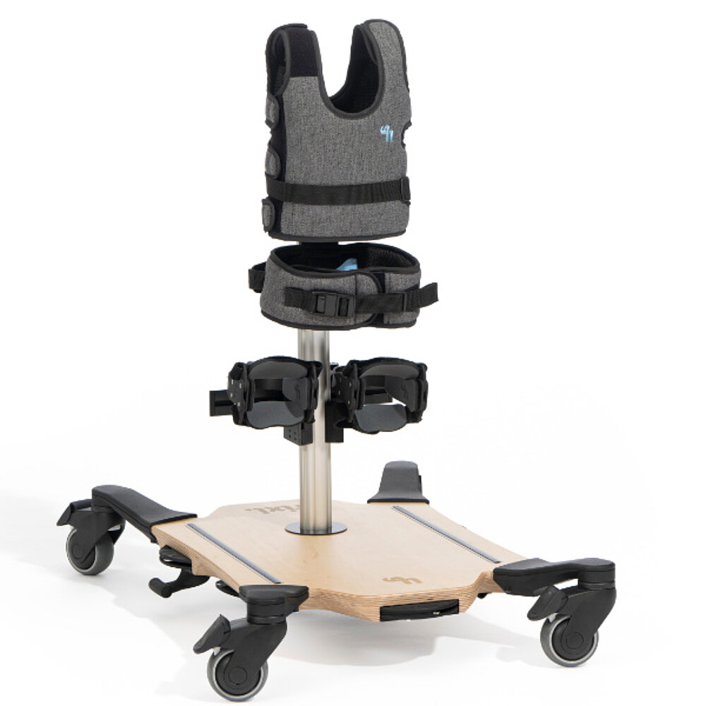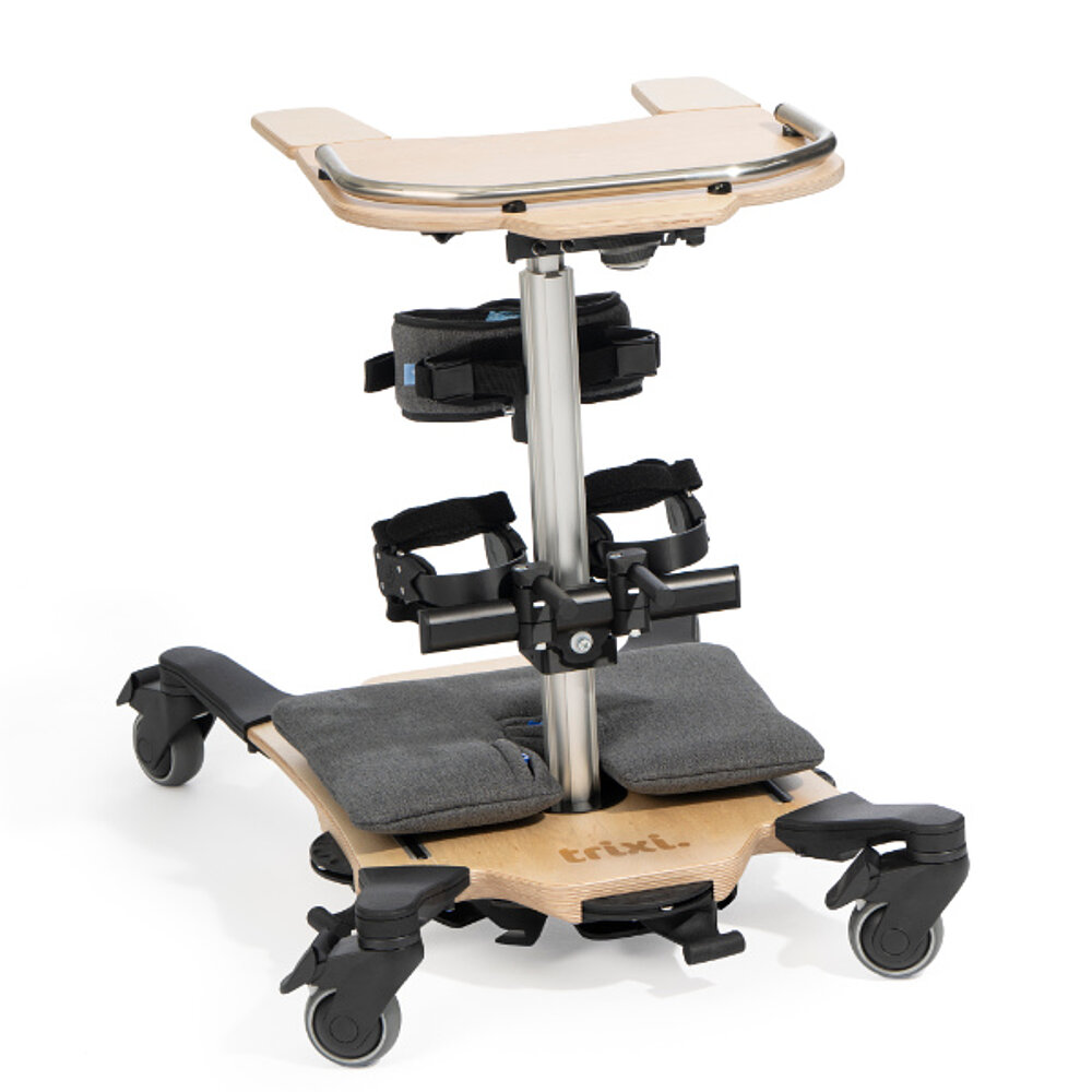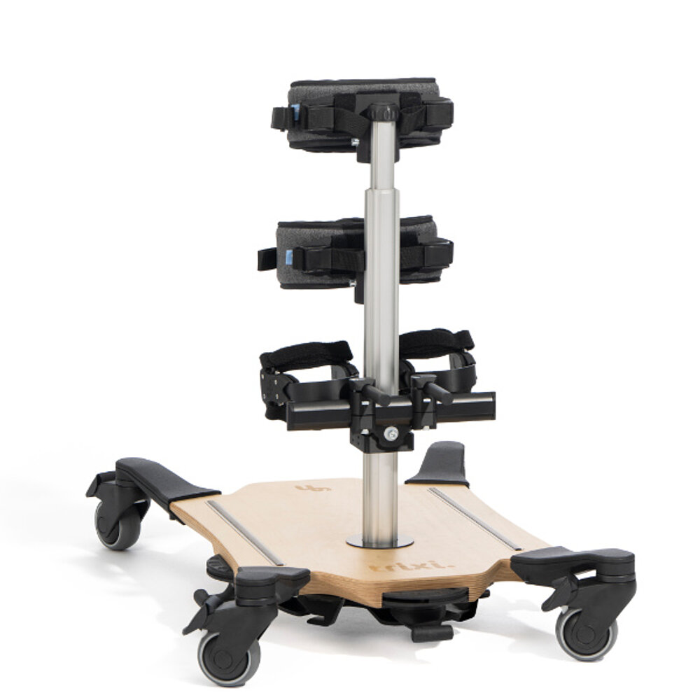 Il trixi. Standing Trainer supporta bambini e ragazzi nell'allenamento attivo in piedi e nella promozione dell'equilibrio, della postura e della stabilità del tronco. Grazie alla funzione dinamica, il trainer si adatta ai movimenti del bambino e consente un allenamento particolarmente naturale. Le numerose possibilità di regolazione e gli accessori opzionali garantiscono una personalizzazione individuale. Il trainer trixi. offre un supporto confortevole e terapeuticamente efficace nella vita quotidiana e in terapia.