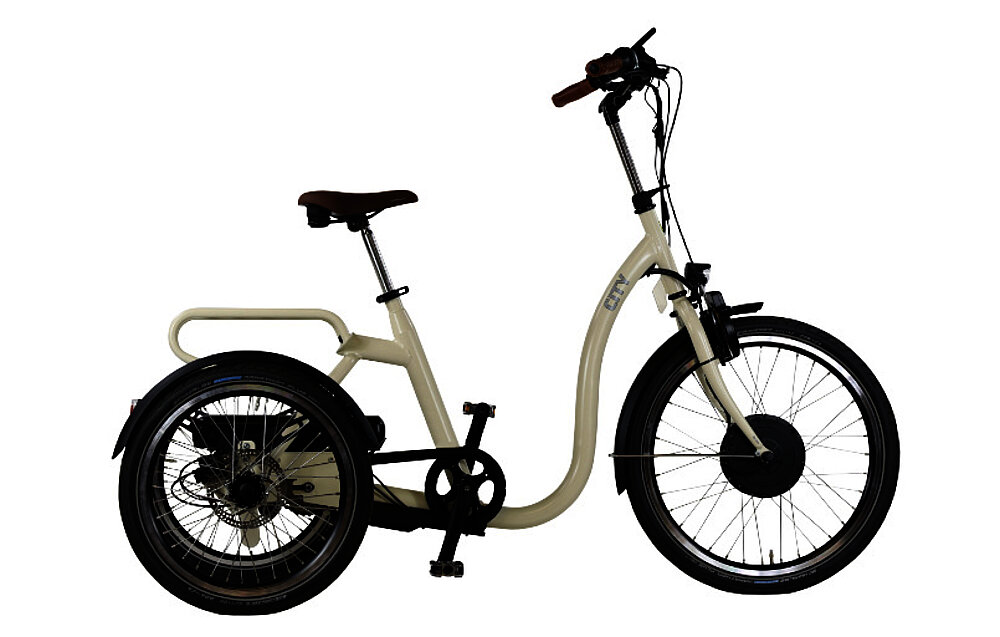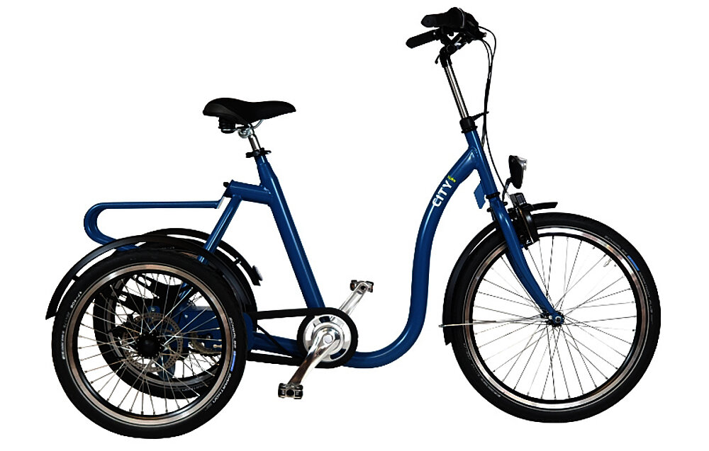 La grande regolabilità della sella e le due misure disponibili (M e L) consentono una posizione di seduta ottimale che piace a molte persone. L'altezza d'ingresso particolarmente bassa (19 cm) facilita la salita e la discesa, soprattutto per chi non vuole affidarsi completamente al proprio equilibrio. Inoltre, questo triciclo può essere personalizzato e fornito nel colore RAL preferito. La city bike è disponibile di serie in grigio chiaro opaco o azzurro opaco.