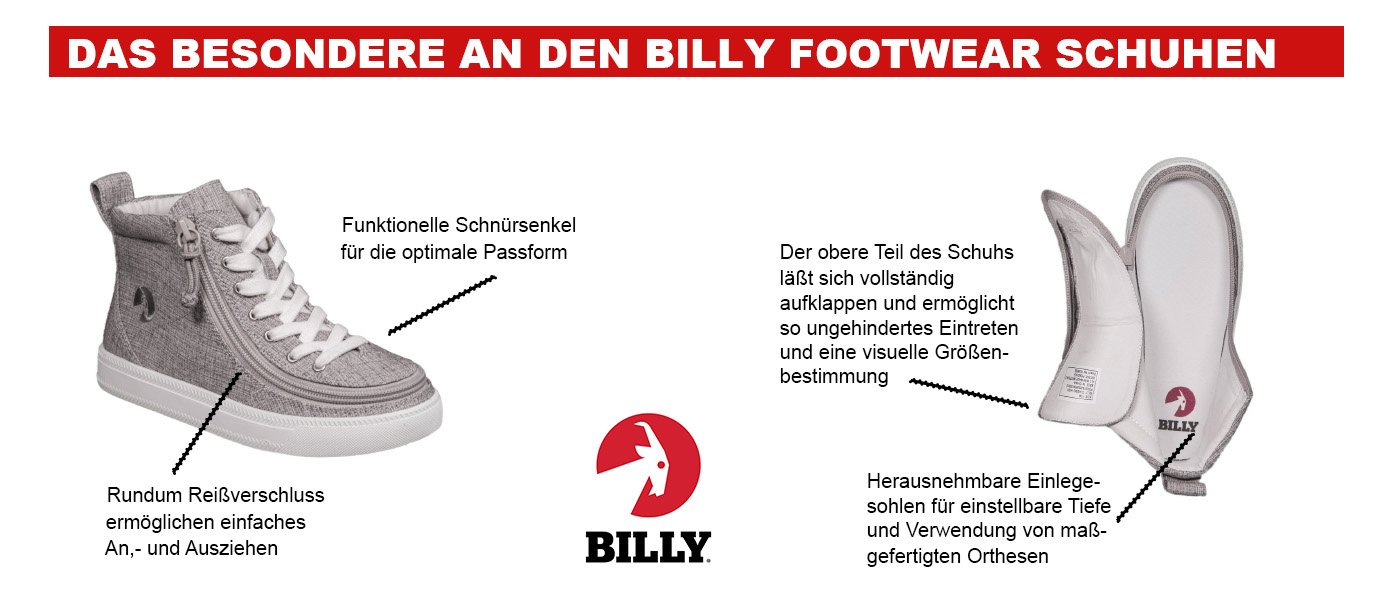 Anche le solette rimovibili per regolare la profondità e l'uso di ortesi personalizzate sono una caratteristica speciale delle scarpe Billy.